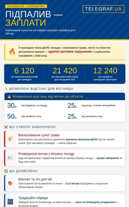 Представники ДСНС надали роз’яснення щодо того, як правильно поводитися з вогнем на власній ділянці та які штрафи загрожують порушникам цього року. Детальніше розповість "Телеграф".