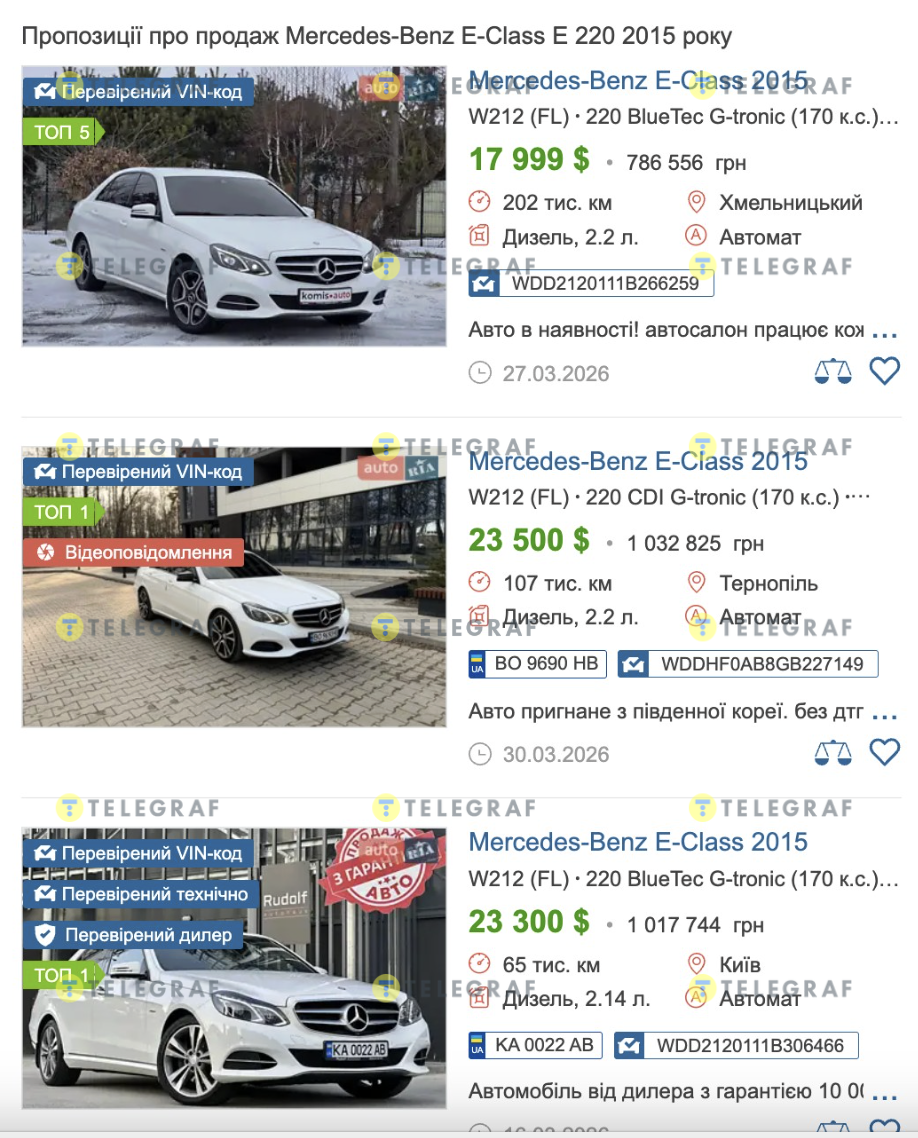 Скільки коштує MERCEDES-BENZ E 220 2015 року випуску