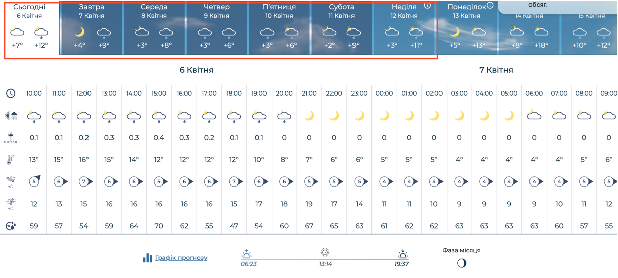 Погода у Києві 6-12 квітня