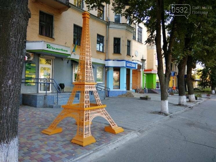 Свою Ейфелеву вежу має і Полтава. Маленьку копію французької споруди у 2017 році встановили на Європейській вулиці, поблизу зупинки громадського транспорту "ім. Панаса Мирного".