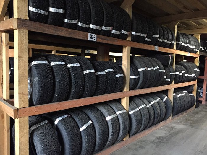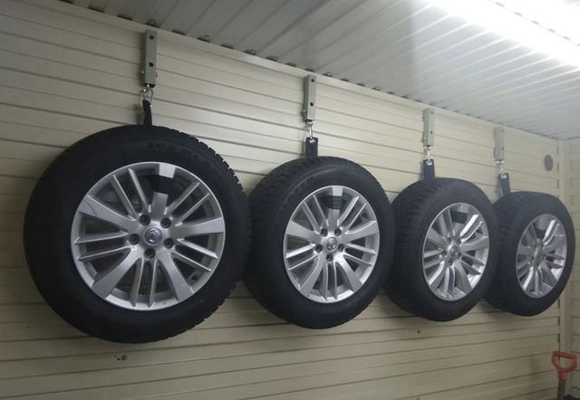Шини зберігають залежно від того, з дисками вони або без. Якщо диски залишати, то можна скласти колеса одне на інше. Можна їх і підвісити, але на певній відстані.
