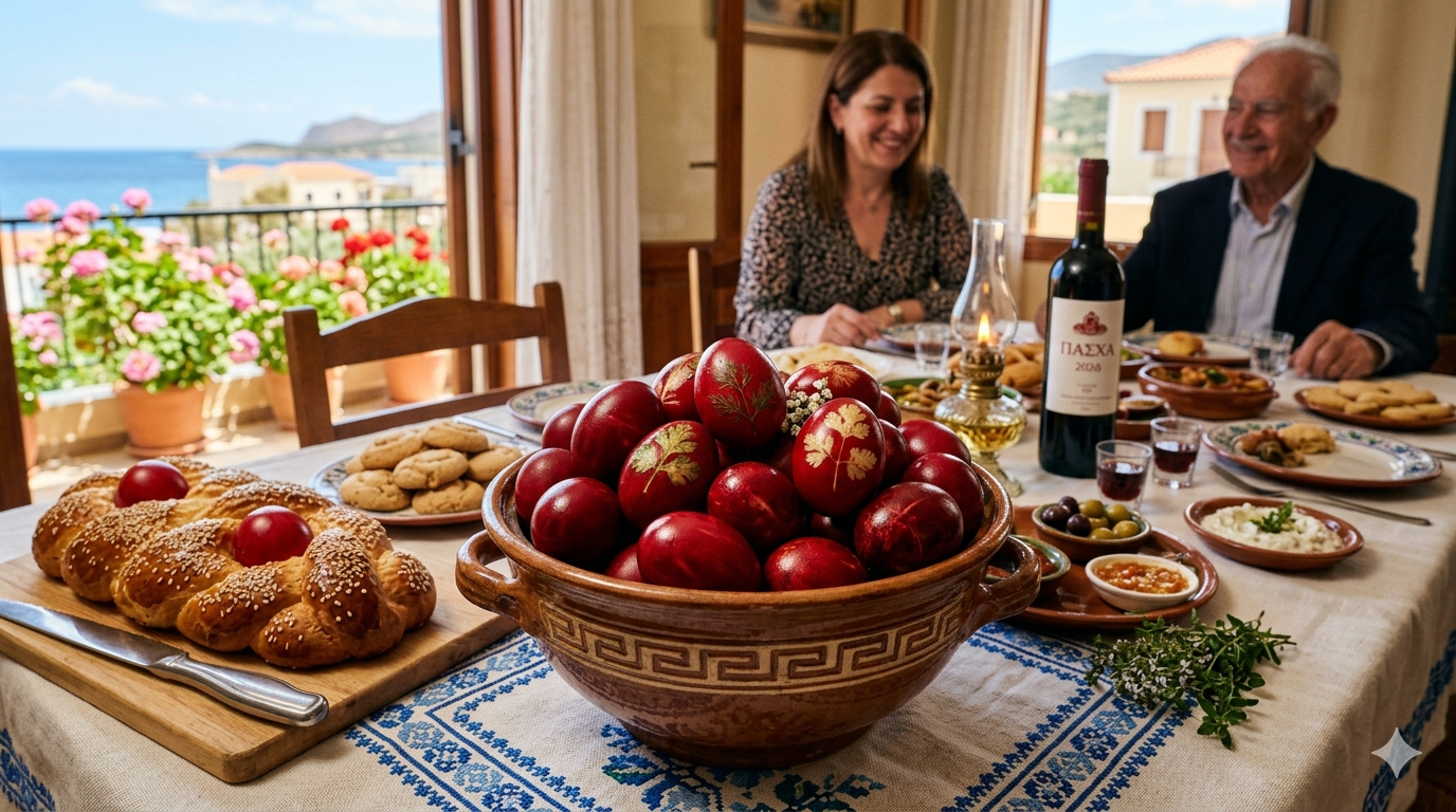Яйце в Греції само по собі уособлює Гроб Господній (закритий каменем) і воскресіння — нове життя, яке "народжується", коли шкаралупа розбивається. Таким чином, червоне яйце одночасно нагадує про жертву Христа та про перемогу життя над смертю.