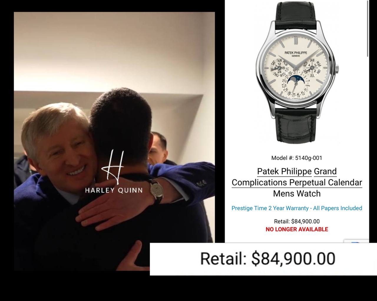 Як пишуть у мережі, ймовірніше йдеться про годинник елітної швейцарської компанії. А саме Patek Philippe Patek Philippe Grand Complications 5140j.