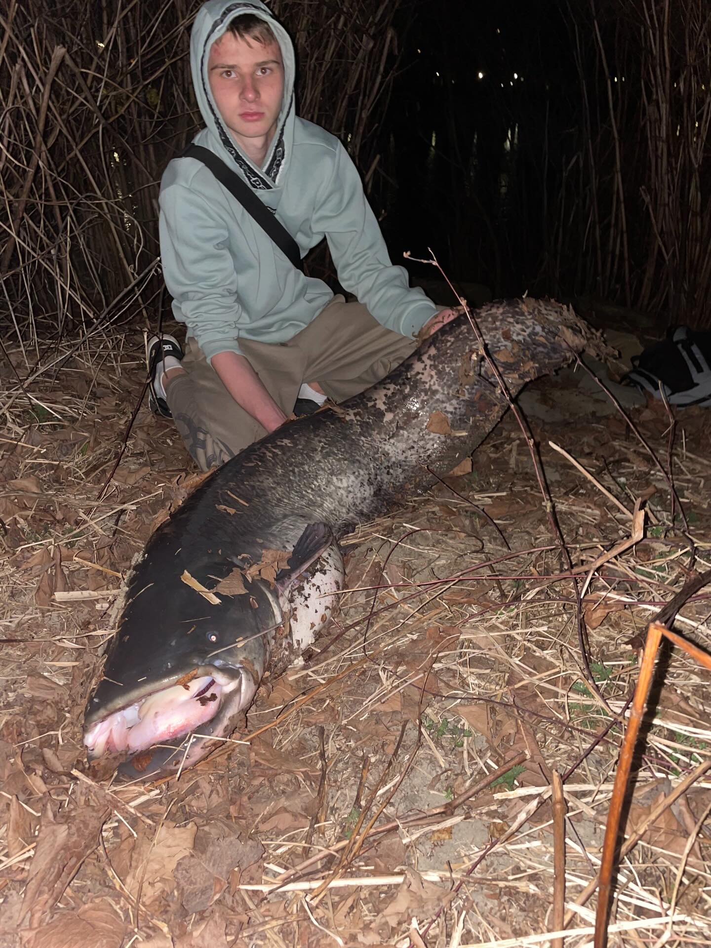 Ввечері юнаку вдалось витягти з води трофейного сома, за яким він довго полював. Як видно на фото та відео, риба має вражаючі розміри. Сом заважив на 21,4 кг та мав довжину в 150 см.