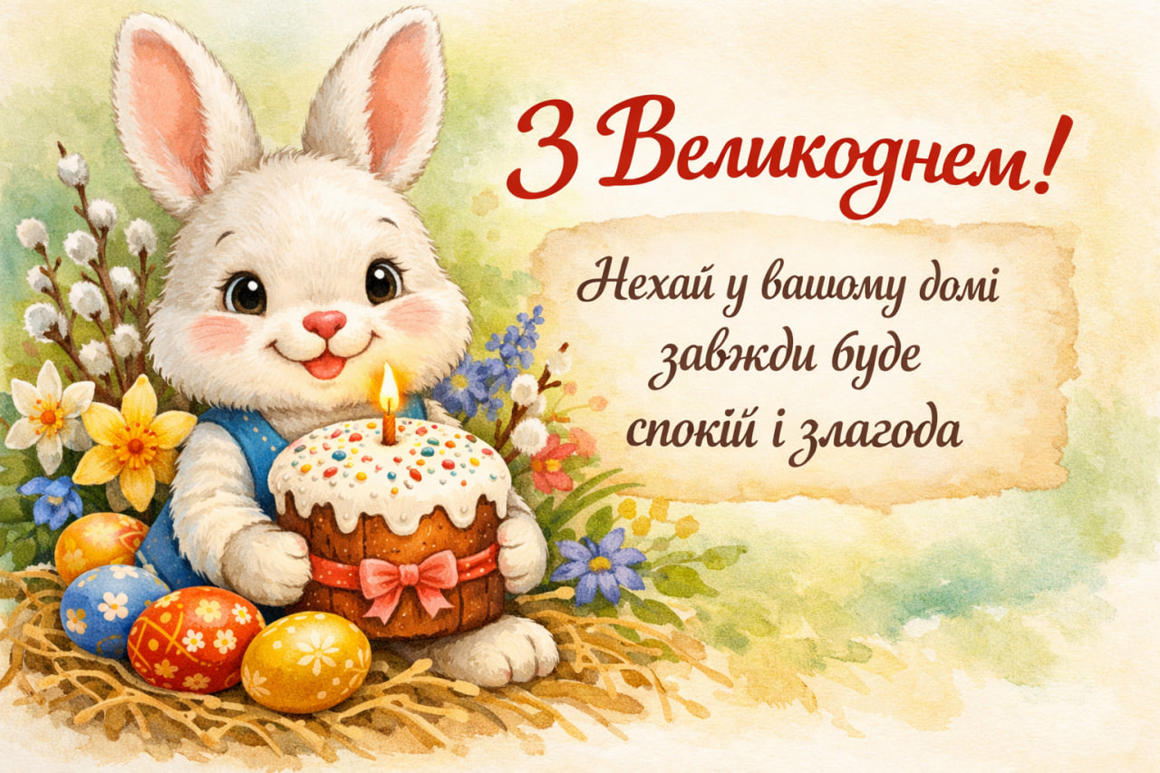 З Великоднем! Нехай навіть у складні моменти знаходиться світло — всередині і навколо. Нехай у вашому домі буде більше спокою, ніж новин, і більше тепла, ніж тривог.