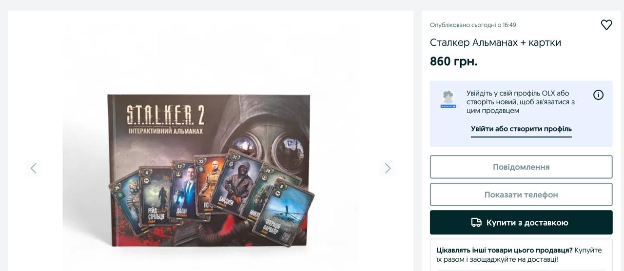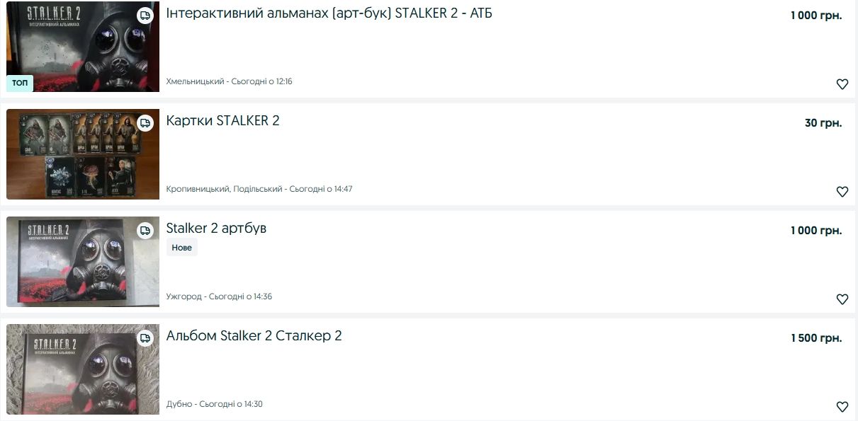 Серед актуальних оголошень, в середньому ціна на книгу-альманах "S.T.A.L.K.E.R. 2: Heart of Chornobyl2" завищена у два рази. Так, їх продають за 800, 1000 та іноді навіть за 1500 гривень.