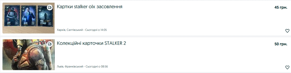 Картки, в середньому, оцінюють від 20 до 50 гривень, але трапляються пропозиції і за 70 та 100 гривень Також є пропозиції щодо обміну карток.