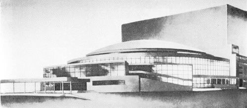 Проєкт театру розробили брати Весніни. Будівлю планували побудувати в дусі конструктивізму. Вона мала поєднувати функції театру, кіно, цирку та майданчика для громадських зібрань.