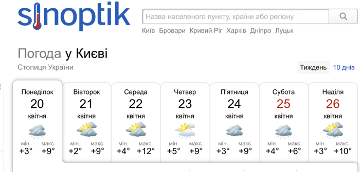 Що каже Sinoptik про погоду у Києві з 21 по 26 квітня