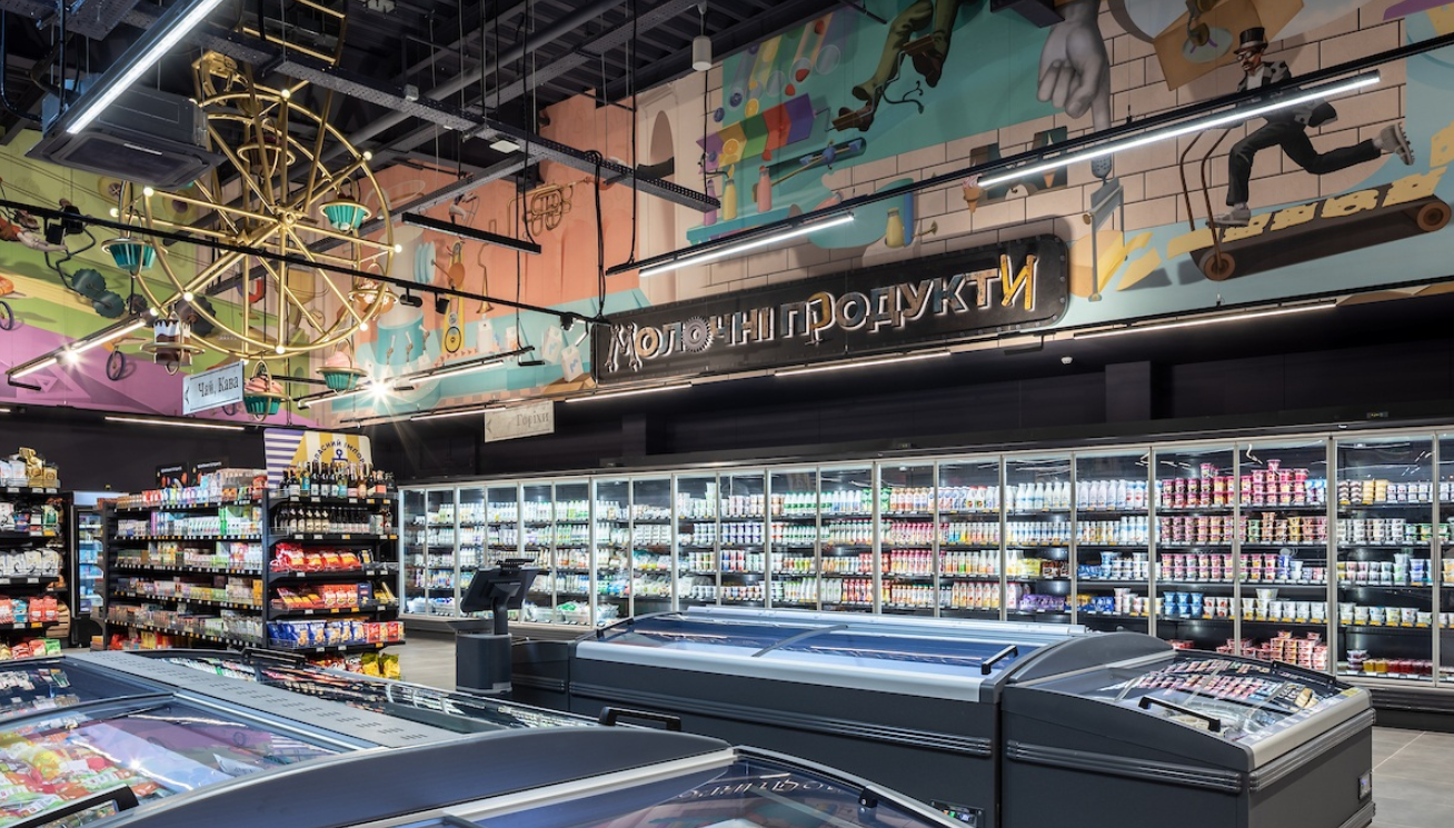 Під стелею ширяє фігура Винахідника на велокулі у формі кавуна. Його незвичайні ідеї розкидані по всьому магазину: у кондитерському відділі обертається солодка карусель, у зоні алкоголю над полицями "літає" штопор-літак. Серед інших арт-об’єктів — кран, з якого замість води падають груші, і фотоапарат Cheese, який "проявляє" сир замість знімків.