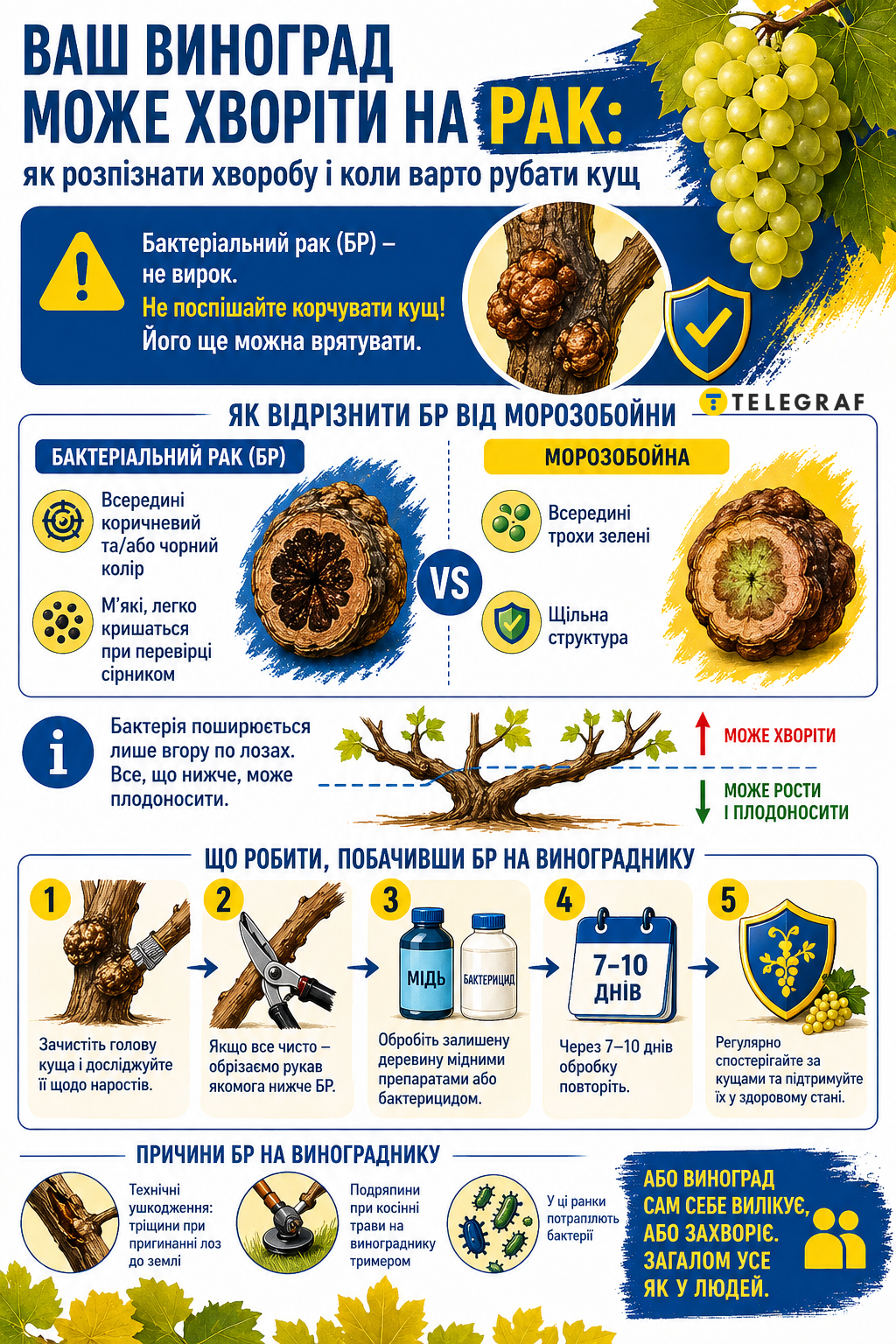 Чому на кущі винограду може з'явитися рак і як його рятувати. Інфографіку підготовано з допомогою ШІ