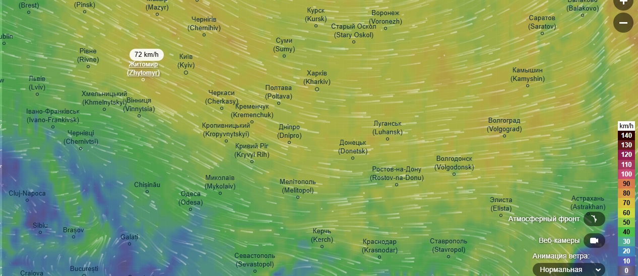В понеділок, 27 квітня, в Черкаській, Київській та Житомирській областях очікуються сильні пориви вітру. Місцями їх швидкість сягатиме 72 км/год або 20 м/с. До кінця доби вітер вщухне.