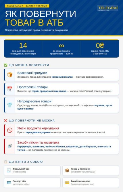 Повернення товарів у найбільшій торгівельній мережі України "АТБ" — процедура стандартна. Проте вона має свої "підводні камені".