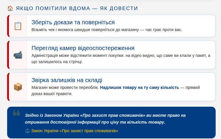 Якщо ж адміністрація відмовляється визнавати помилку навіть після перегляду камер — ви маєте право залишити запис у книзі відгуків (у цифровому або паперовому вигляді) та звернутися до Держпродспоживслужби.