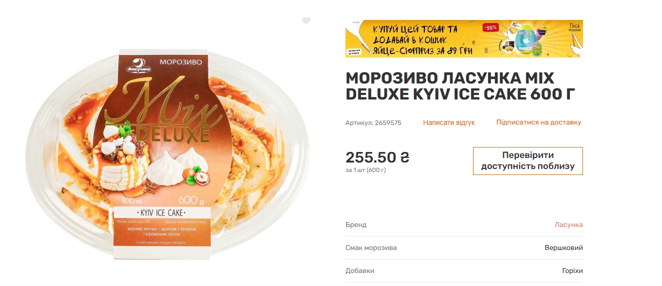 "Mix Deluxe Kyiv Cake у форматі морозива? Так, це реально!", — зазначила жінка.