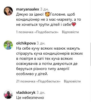 "Дякую за ідею! Головне, щоб кондиціонер не з мас-маркету, а то не хочеться труїти дітей і себе";