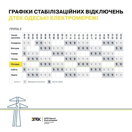 На сайті ДТЕК Одеські електромережі також було опубліковано графіки відключень. У компанії зазначили, енергетики вже працюють, щоб повернути світло в оселі українців.