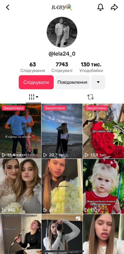 Зауважимо, що це дівчина з ніком Baby у TikTok, вона має понад 7 тисяч підписників. Здебільшого вона поститить розважальний контент. На сторінці вказано, що дівчину звуть Олена, є також і кілька постів під російські треки.