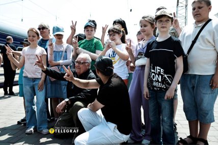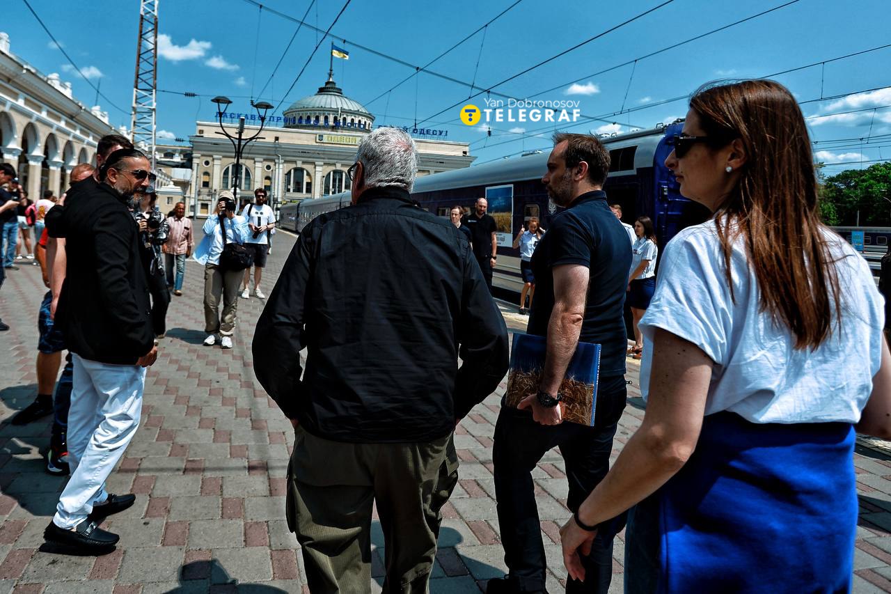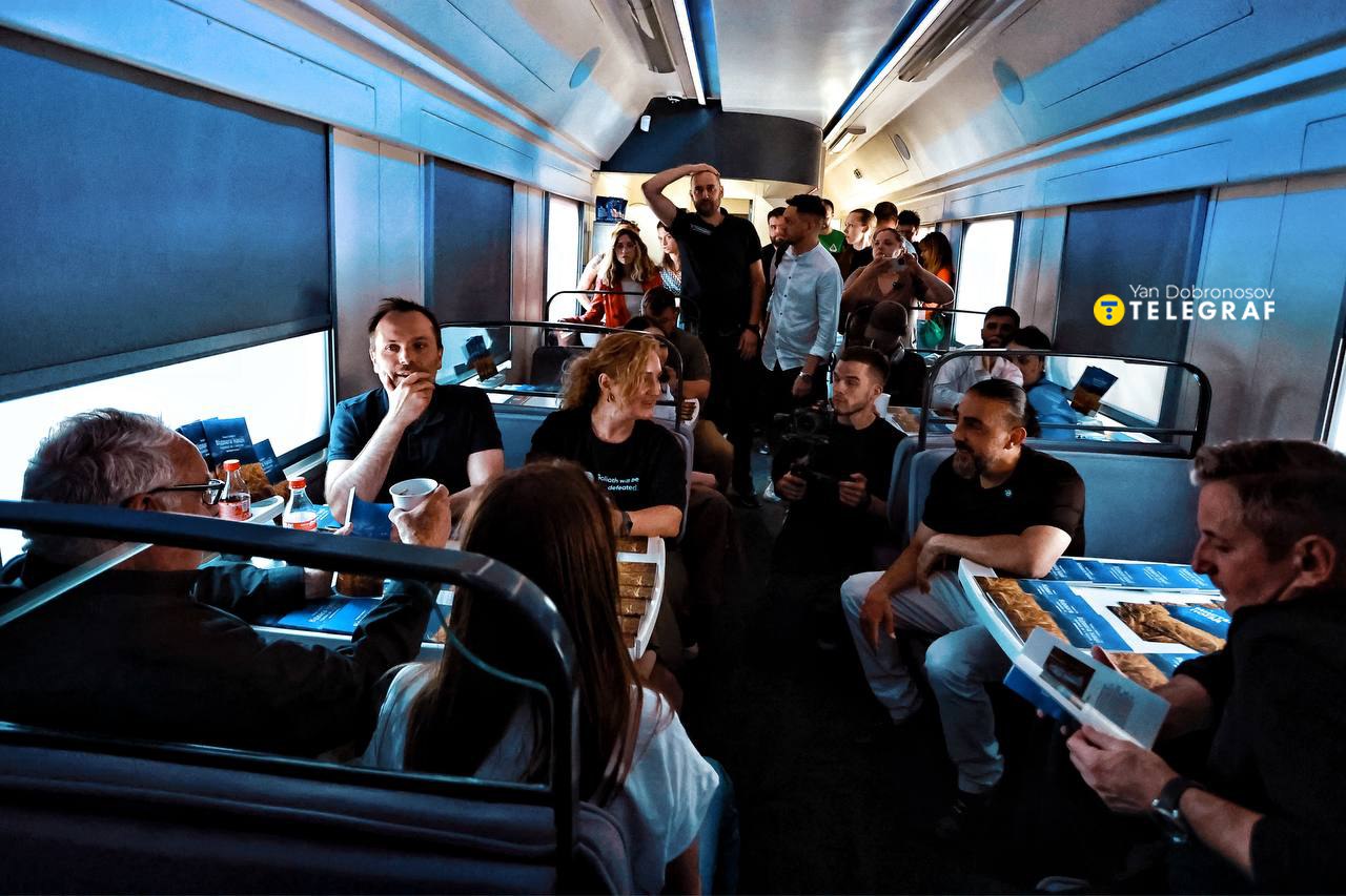 В Одесі презентували новий проєкт "Укрзалізниці" — Мистецький потяг, створений у партнерстві з американським меценатом Говардом Баффеттом. Експозицію створено в співпраці з лауреатом двох Пулітцерівських премій Мохаммедом Мухайсеном, який особисто провів екскурсію для гостей.