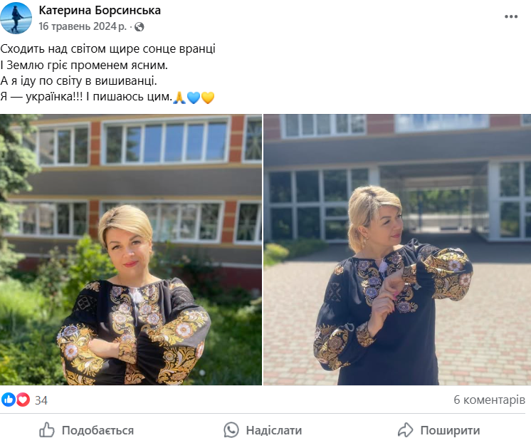 Ще недавно Катерина Борсинська розповідала, як пишається бути українкою:
