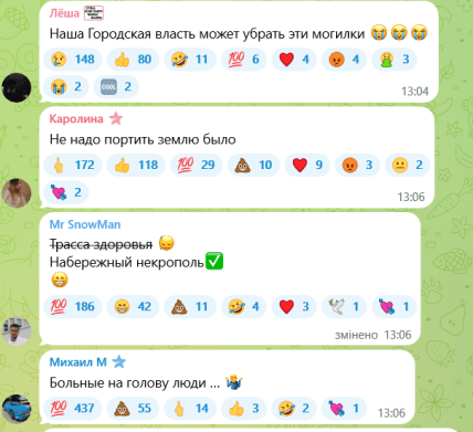 Тим часом дехто жартує, хоч і з ноткою сарказму: мовляв, Траса здоров'я поступово перетворюється на "трасу упокою" або навіть "набережний некрополь"
