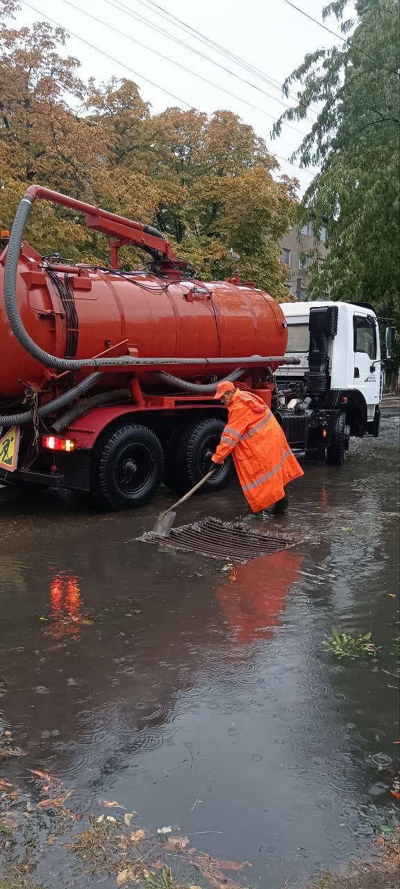 На всіх вулицях забезпечено проїзд, але водіїв закликають бути обережними. Окрім того, комунальники з самого ранку розпочали роботу з розчистки стоків води на дорогах. Однак на деяких ділянках, як видно на фото, машини фактично плавають.