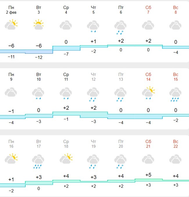 Схожої думки дотримується метеорологічний сервіс Meteo.ua. Там також прогнозують потепління із 5 лютого, коли повітря прогріється до 0+2 градусів. А вже з 12 числа очікується до +6+8 градусів. Можливі опади у вигляді дощів та снігу.