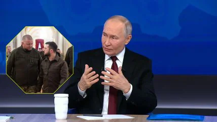 "Не важливо, скільки у нього (Зеленського, — ред) відсотків, чотири чи скільки. Важливо інше — у нього рейтинг за нашими даними, і вони мають об’єктивний характер, рівно вдвічі менший, ніж у його найближчого можливого політичного суперника. Це пан Залужний, колишній командувач ЗСУ, якого заслали до Лондона", — сказав Путін.
