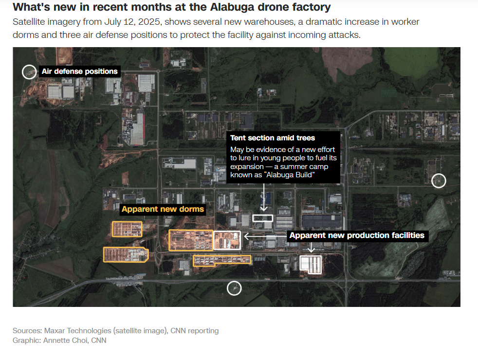 Китайські компоненти до ОЕЗ "Алабуга" ввозяться не тільки через фірми-прокладки. Видання The Telegraph також виявило п’ять російських компаній, усі під глобальними санкціями, які займаються імпортом китайських компонентів і безпосередньо постачають значну частину деталей, що використовуються у виробництві дронів. Стабільне постачання дозволяє Росії нарощувати виробництво, будуючи все нові та нові цехи в ОЕЗ "Алабуга".