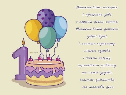 Раніше "Телеграф" ділився добіркою привітань із днем народження дитини 1 рік. Виберіть та надішліть найкращі побажання рідним та близьким іменинника чи іменинниці.