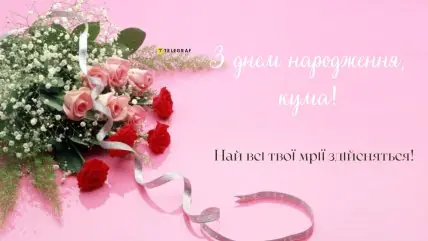 Кума, нехай цей день народження пройде яскраво, незабутньо та весело. Бажаю, щоб у тебе завжди були приводи для радості. Нехай усі твої мрії здійснюються та бажання виконуються!
