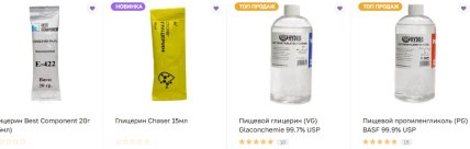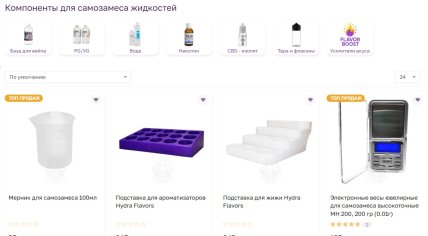На першому сайті можна купити все для цього, включаючи нікотин, тару, гліцерин, мірні прилади і так далі. В асортименті навіть рідкий ізолят CBD являє собою "концентровану" форму канабідіолу.