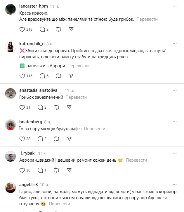 На думку багатьох, у стиках поміж панелей без ізоляції швидко з’явиться грибок. А частина коментаторів взагалі засумнівалася, що вони зможуть витримати в таких умовах більше кількох місяців.