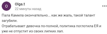 У мережі розкритикували Камілу за підтримку Путіна. Один із користувачів зазначив, що влада РФ зробила все, щоб занапастити кар’єру Валієвої у фігурному катанні.