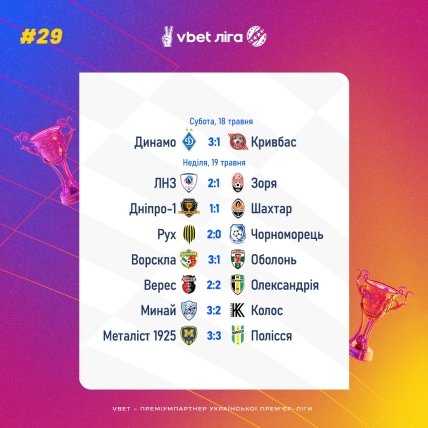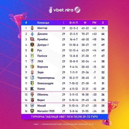 А от серед команд, що розташувалися на 13-16 місцях, в останньому турі буде справжня рубка. Заочна та очна ("Металіст 1925" — "Верес"). На даний момент у "Оболоні" 26 очок, "Вереса" та "Минаю" — по 25, "Металіста 1925" — 23 бали.