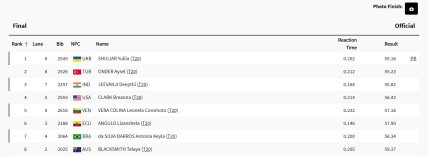 Друге місце в забігу посіла Айсель Ондер із Труції, а третє Діпті Джіванджі з Індії.