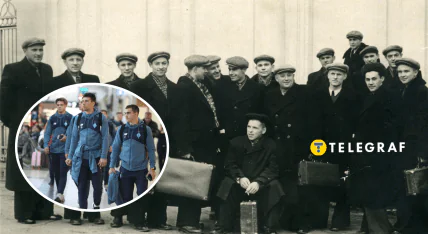 Знімок зроблений у 1955 році та наочно показує, як виглядали футболісти 70 років тому. На той час радянських гравців не можна було відрізнити від інших громадян. Футболісти їздили на матчі у звичайному одязі, клубна атрибутика увірветься у футбол пізніше.