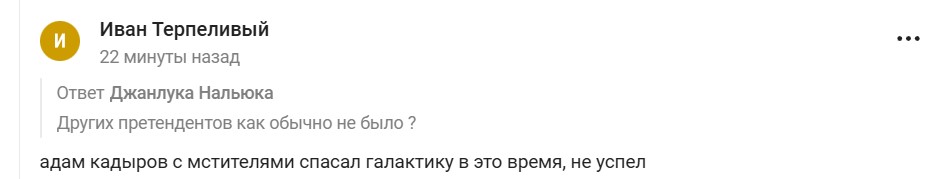 У мережі зі сміхом сприйняли цю новину. Користувачі жартують, що син голови Чечні Рамзана Кадирова Адам не зміг взяти цю нагороду, адже в цей момент був надто зайнятий.