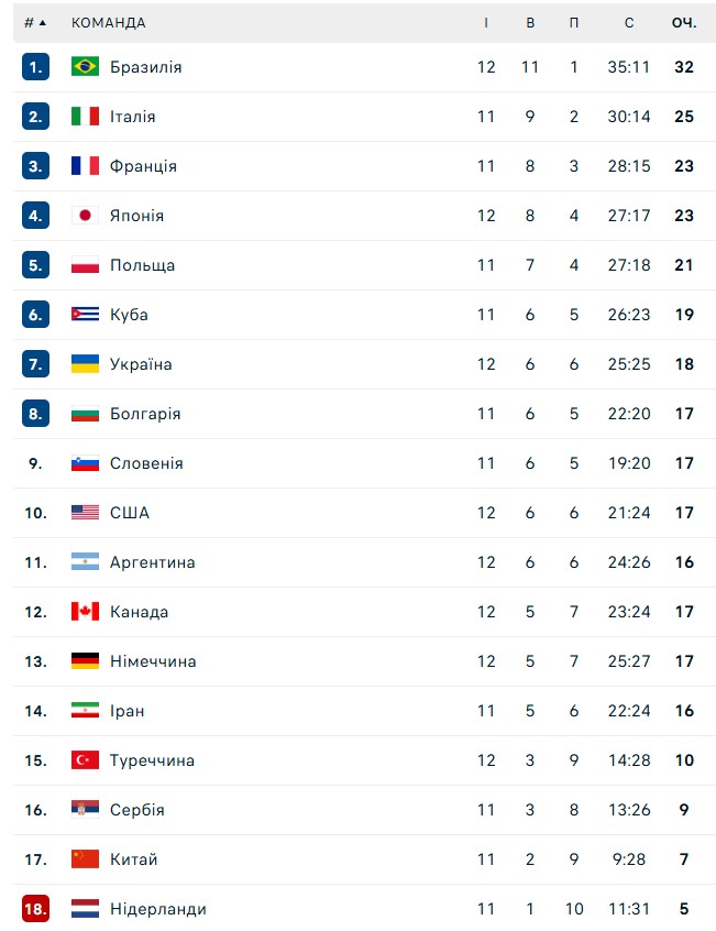 25 червня, 12:30 Україна – Франція — 0:3 (23:25, 21:25, 17:25)
