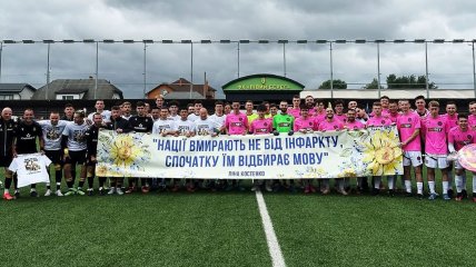 Українська футбольна медіаліга UA STEEL перед матчем нового туру опублікувала фото гравців із банером на підтримку української мови. Це сталося на тлі мовного скандалу з гравцем медіакоманди "Армат" Євгеном Селезньовим.