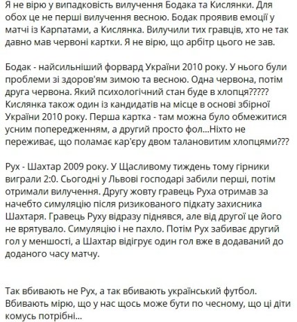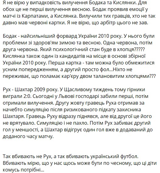 Футбольний блогер Сергій Тищенко на своєму telegram-каналі заявив, що подібне суддівство вбиває не "Рух", а весь український футбол.