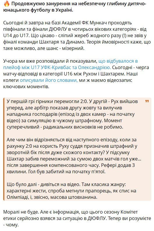Про це повідомляє "ТаТоТаке" на своєму telegram-каналі. Джерело вказало на проблему на прикладі матчу плей-оф між "Шахтарем" U-16 та "Рухом" U-16.