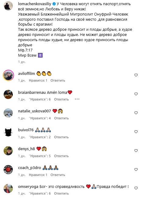 Будь-яке добре дерево приносить добрі плоди, а погане – погані. Не може погане дерево приносити добрі плоди, а хороше – погані. Мир усім", – написав Ломаченко.