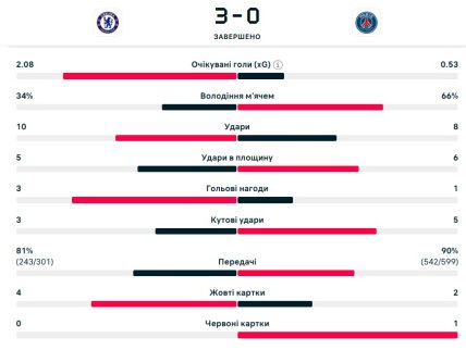 Перший тайм перетворився для ПСЖ на холодний душ. Футболісти "Челсі" за тайм тричі забили у ворота Джанлуїджі Доннарумми. Особливо відзначився Коул Палмер, який оформив дубль та асист на Жуана Педро.