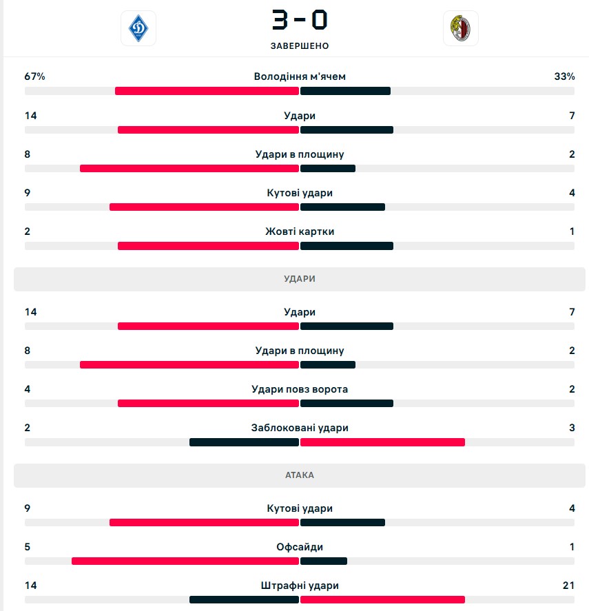 Кияни впевнено розпочали поєдинок і навіть забили, щоправда, взяття воріт у виконанні Крістіана Біловара скасував VAR через гру рукою. Проте Біло-Сині пішли на перерву, ведучи в рахунку 2:0. За "Динамо" забивали Владислав Ванат, який скористався "подарунком" захисника, та Володимир Бражко, який замкнув ідеальну командну атаку чемпіонів України.