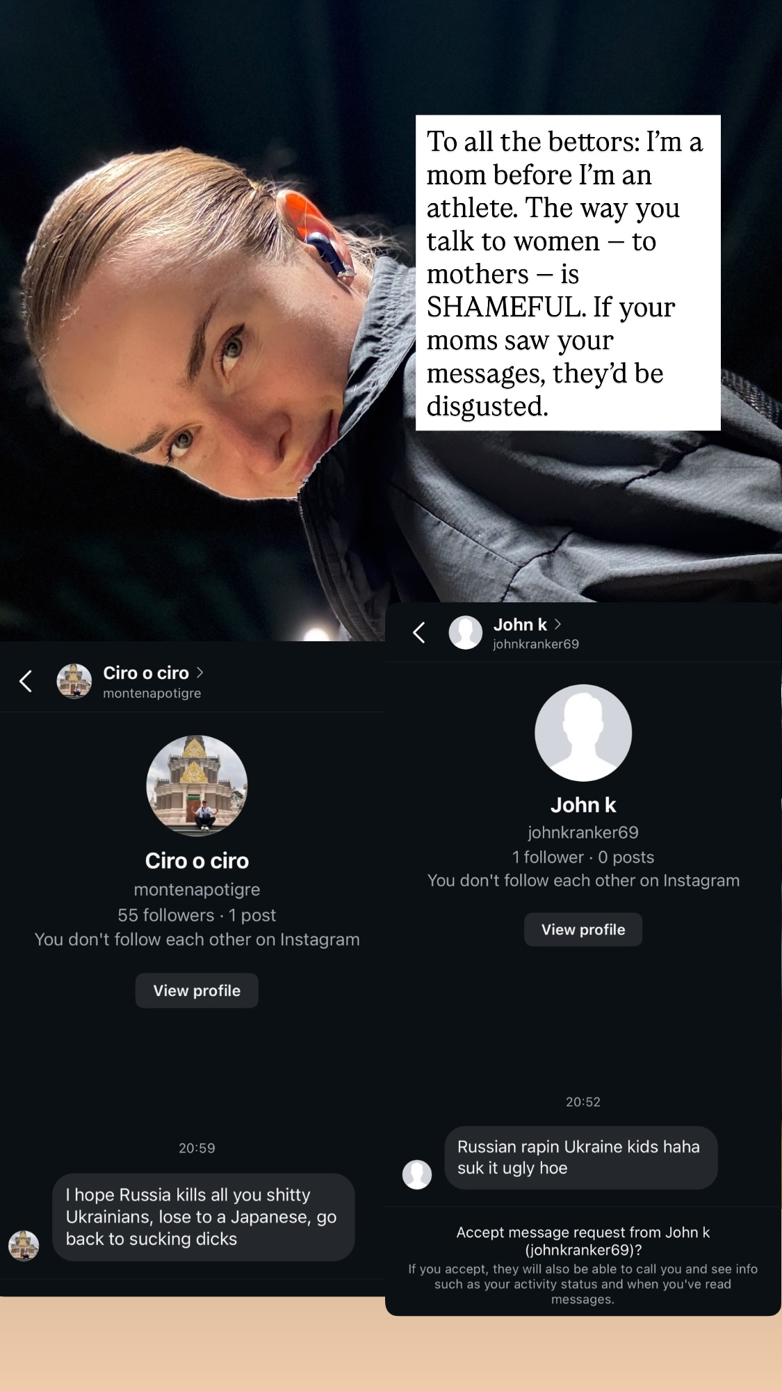 Усім, хто робить ставки: я насамперед мама, а потім уже спортсменка. Те, як ви спілкуєтесь із жінкою, з мамою – це сором.