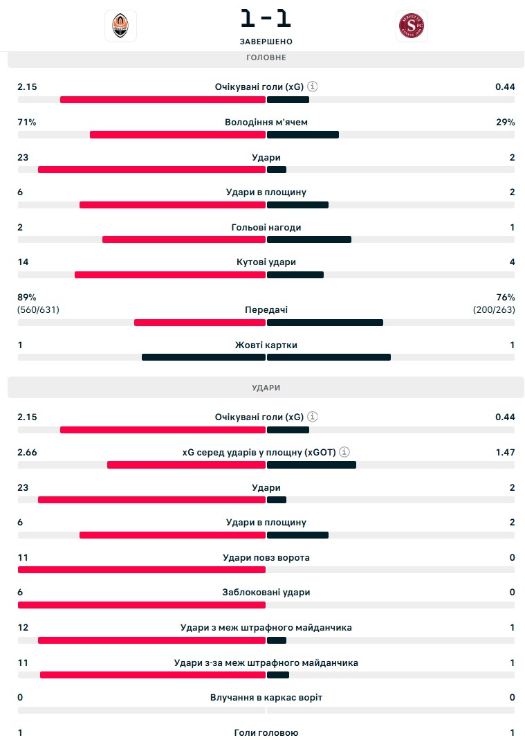 Статистика матчу Шахтар - Серветт