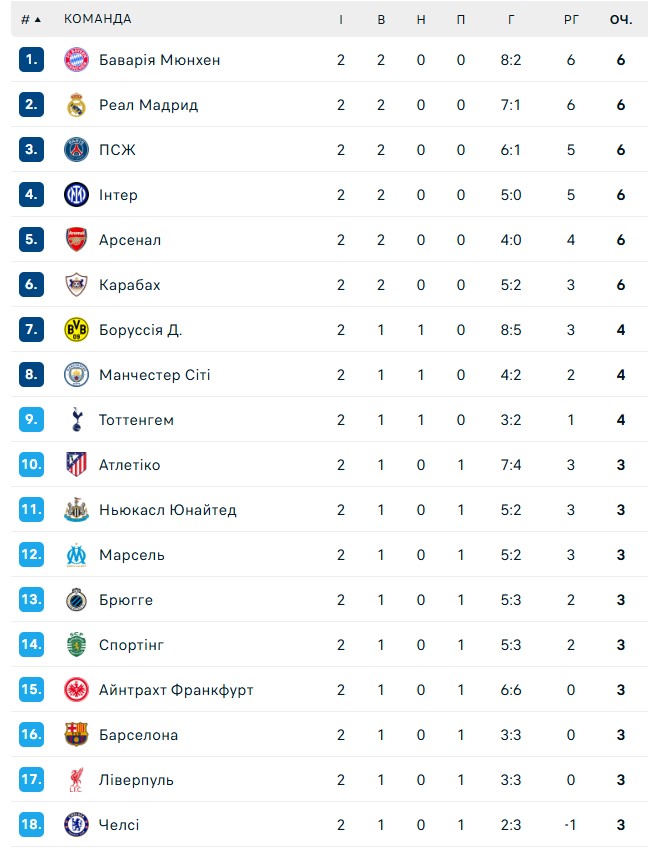 У вівторок, 30 вересня, стартував другий тур основного етапу Ліги чемпіонів УЄФА сезону 2025/26. Перший тур ЛЧ подарував уболівальникам масу емоцій та кілька несподіваних результатів.