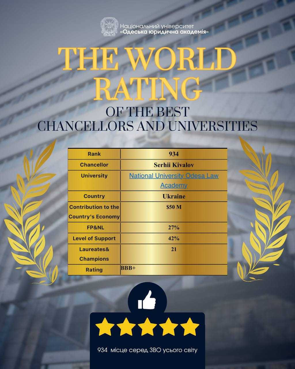 У 2025 році Юракадемія увійшла до ТОП-300 університетів світу за рейтингом Times Higher Education Impact Ranking. Forbes Ukraine включив нас до ТОП-10 найпривабливіших ЗВО України, а міжнародний рейтинг IHBI World Ranking 2025 визнав НУ "ОЮА" та засновника Сергія Ківалова одними з ТОП-1000 світу із понад 18 000 закладів освіти.