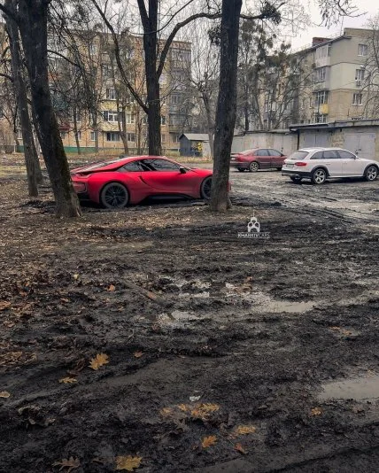 Країна контрастів: у Харкові посеред багнюки у дворі помітили розкішний спорткар (фото)